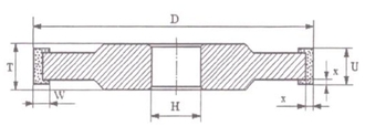 КРУГИ АЛМАЗНЫЕ ШЛИФОВАЛЬНЫЕ ПЛОСКИЕ ПРЯМОГО ПРОФИЛЯ ТРЕХСТОРОННИЕ НА ОРГАНИЧЕСКОЙ СВЯЗКЕ ФОРМЫ 14U1